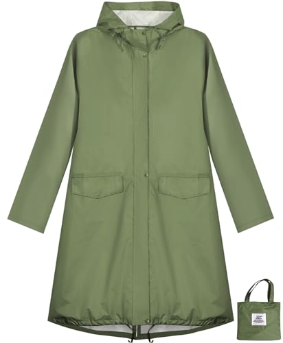 LAMA Snygg lång regnrock, unisex, regnponcho med vattentät ficka, huva, dragsko, vuxna regnkläder, regncape, regnjacka, män. kvinnor, Grön, XXL