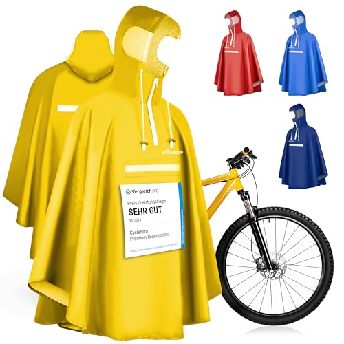 CYCLEHERO vattentät cykel regnponcho TEST MYCKET BRA - cykel regnkappa med reflexer och visningsfönster - vattentät cykel regnkläder som en regnponcho för dam, regnponcho för män, GUL, XL