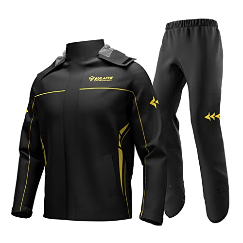 Fesjoy Regnjacka, vattentät motorcykel-regndräkt för män och kvinnor, cykling cykel regnkläder, jacka och byxor med förvaringsväska, regnjacka vattentät andas, svart, L