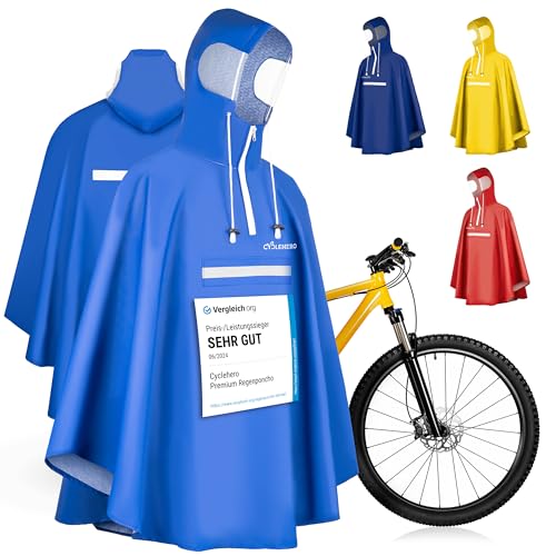 CYCLEHERO vattentät cykel regnponcho TEST MYCKET BRA - cykel regnkappa med reflexer och visningsfönster - vattentät cykel regnkläder som en regnponcho för dam, regnponcho för män, blå, M