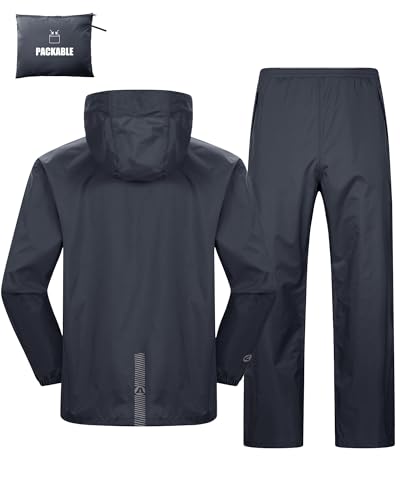 Män & kvinnor regndräkt reflekterande vattentät packbar regnjacka regnbyxor utomhus regnkläder vindtät regnset regnkombination för cykling fiske vandring, Mörkgrå-ofodrad, XXL