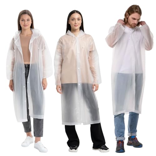 3 stycken regnponcho EVa regnjacka med huva vattentät transparent regncape vikbar regnponcho regncape en storlek regnrock regnkläder för cykel vuxna män kvinnor, transparent, L-XL