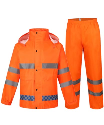 OlyljpinZ Regndräkt för män, regnkombination, långärmad, vattentät med elastisk midja, huvjacka, kostym, regnkläder, regnjacka + regnbyxor, 2-delat set med jacka och byxor, apelsin, M
