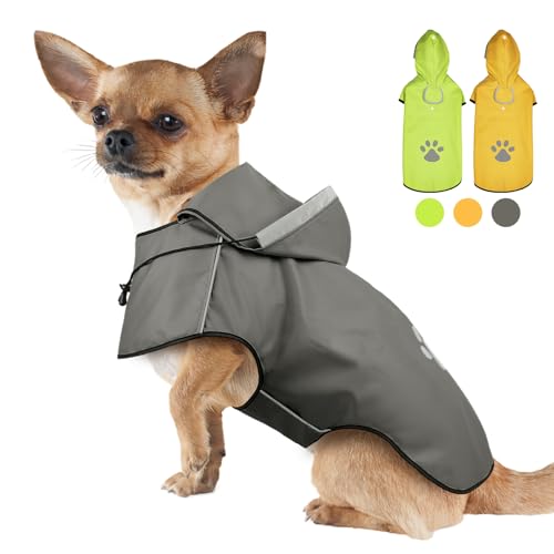Hundregnjacka DQGHQME husdjur hund regnrock med huva, justerbar hundregnrock, hundrock vattentät, reflekterande regncape hund, regnjackor för små medelstora stora hundar, S