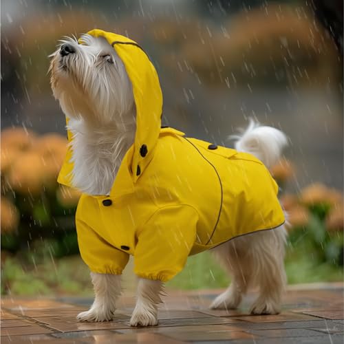 Hundregnrock, DQGHQME regnjacka, hundar, reflekterande, regnrock, hund, vattentät, regnrock, hund med huva, justerbara regnjackor för små medelstora, stora hundar med kardborreband, gul-XL