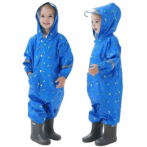 Fewlby Regnjacka för barn vattentät - regnponcho regnjacka flickor regndräkt regnrockar med huva återanvändbar vattentät jumpsuit 1–10 år, Blå, 2-5 años