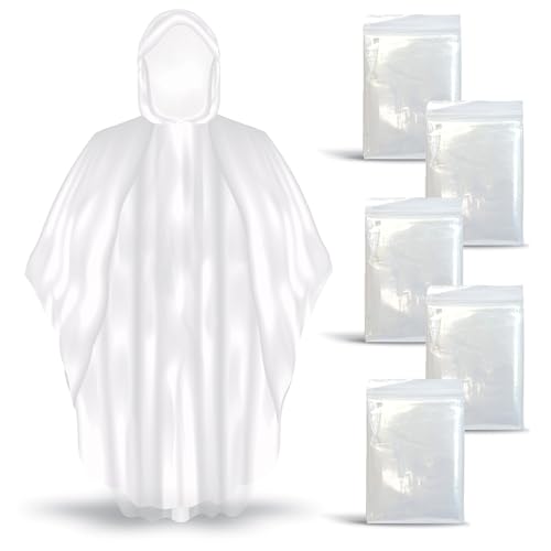 Henrycares Vattentäta regnponchos vuxna, 6/10 st engångs genomskinliga regnrockar för kvinnor och män nödsituation, 150 cm med huva och ärmar familjepaket, för utomhuskonsert, temaparker, camping,