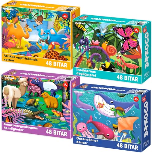 QUOKKA Pussel Från 4 5 6 År – 4x48 Bitars Rampusselspel För Pojkar Och Flickor – Färgglatt Pussel Med Amazonas Regnskog, Insekter Och Havsdjur – Presentleksak För Barn 3 7 År.