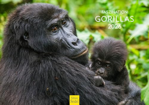 Edition Seidel Premium kalender fascination gorillas 2026 format DIN A3 väggkalender djurkalender Afrika regnskog apor primater vilda djur skogsdjur