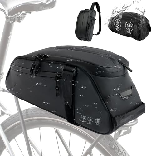 KEMIMOTO Cykelväskor Combo 3-i-1, cykelsadelväska med vattentätt regnskydd, 52 l stort förvaringsutrymme, ryggsäck, Mountain Road e-cykel, bagagehållare, väska, svart