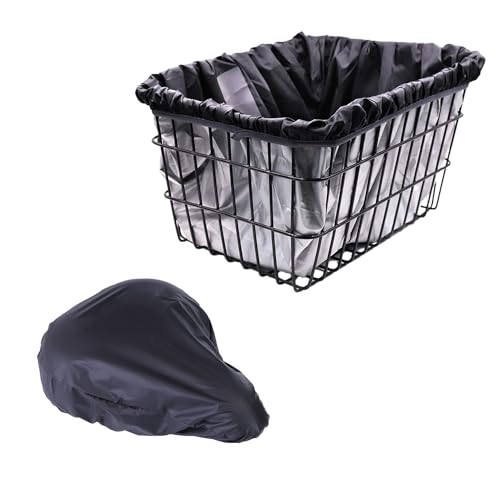 Cosysparks Cykelkorgskydd, vattentätt, 2-pack cykelkorgskydd, regnskydd med cykelsadelskydd, svart vattentät cykelkorg regnskydd för cykelkorgar (korgskydd + sätesskydd)