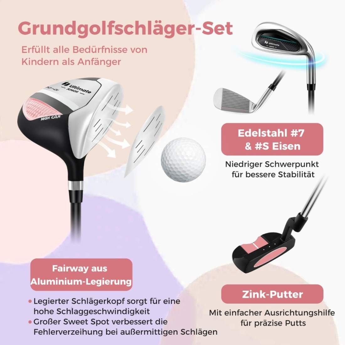 4-delat barngolfklubbset med golfbag och regnskydd för barn 8-10 år, rosa