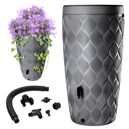 KADAX Regnvattentank med integrerad växtbehållare i locket, 240 l, regnvattentank i plast med kran, frostsäker, mörkgrå