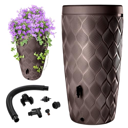 KADAX Regnvattentank med integrerad växtbehållare i locket, 240 l, regnvattentank i plast med kran, frostsäker, mörkbrun