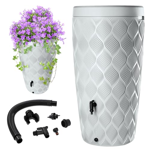 KADAX Regnvattentank med integrerad växtbehållare i locket, 240 l, regnvattentank i plast med kran, frostsäker, vit