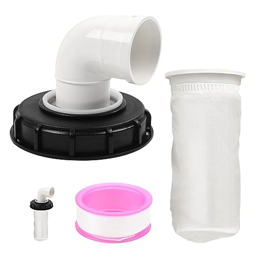 MaxEarn IBC lockfilter, 165 mm 90 graders regnvattenfilter, inbyggda nylonfilterpåsar, DN75 mm tanklock vattenfilter för regnvattentank tunnfat IBC-behållare