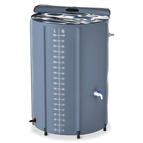 Wiltec hopfällbar regnvattentunna 250 l med lock, vattentunna i 620 g/m² pvc, regnvatten tank med tappkran, vattenreservoar för trädgård med slanganslutning