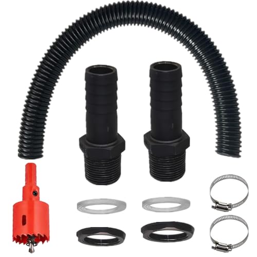 Regntunna anslutningsset, regntunnekontakt med 1 m slang, 2 slanguttag, 2 silikontätningsringar, 2 rörklämmor av rostfritt stål och hålöppnare för regnvattentunna