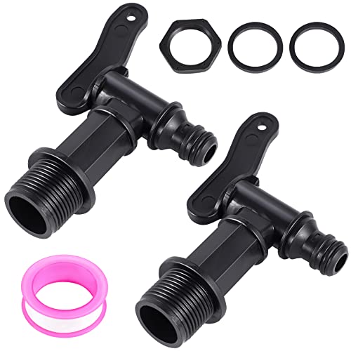 2 stycken utloppskranar för regntunnor, vattenkran 3/4 tum plast ersättningskran med tätning, låsmutter tätningstejp för regnvattentunna, vattentank, regntunna (svart)
