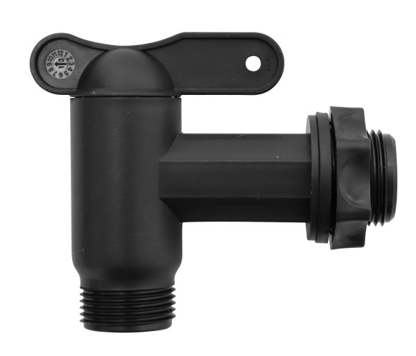 GASMIS utloppskran för regntunna, ersättningskran av plast, kran för regnvattentunna, regntunna, vattentunna – med tätning, låsmutter och krananslutning, 26,44 mm, svart, 1 styck