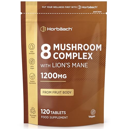 Svamp Komplex 1200 mg | Mushroom Complex Vegan | Komplex av Lejonman Chaga Cordyceps Reishi Shiitake Maitake Lurvig Man och Ostron | 120 Veganska Kapslar | Horbaach