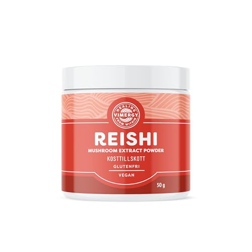 Vimergy Reishi Svamp Pulver, 33 Portioner – Reishi Extrakt – Veganskt Svamp Kosttillskott – Formulerat utan Antiklumpmedel, Fyllmedel, Smakämnen eller Socker – Icke-GMO och Glutenfritt (50g)
