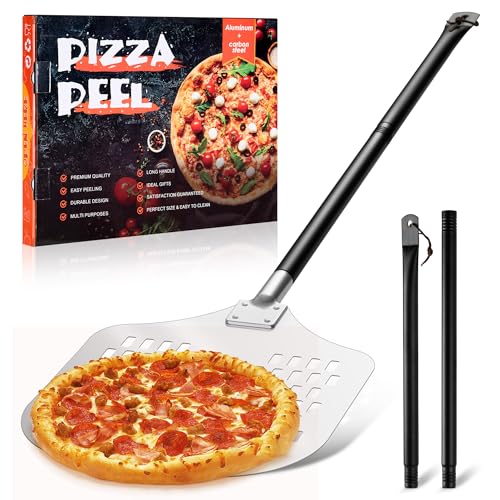 TEAMFAR Perforerad pizzaspjäll, 30,5 x 42 x 124 cm, hårdeloxerat aluminium, lätt glidning på pizzasten, rektangulär, stor andel yta, avtagbart handtag