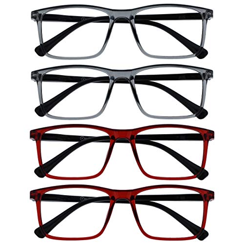 OPULIZE Bläckläsglasögon 4-pack stor rektangulär ram transparent grå mörkröd fjädergångjärn reptåliga män kvinnor RRRRRR4-77ZZ +2,50