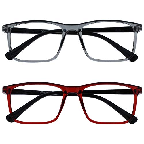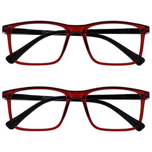 OPULIZE INK läsglasögon för kvinnor och män – 2-pack – stor rektangulär ram – komfort fjädergångjärn – reptålig – röd +1,50