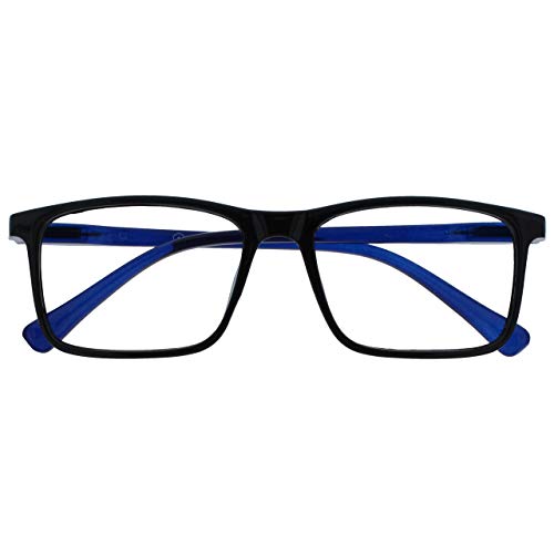 OPULIZE Ink glasögon stor rektangulär ram fjädergångjärn reptålig herr dam R4, Svart front med blå armar, +1,50 Dioptrien