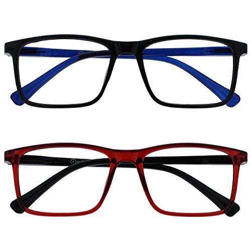 OPULIZE Bläckläsglasögon 2-pack stor rektangulär ram mörkröd svart arm fjädergångjärn reptåliga män kvinnor RR4-Z +2,00