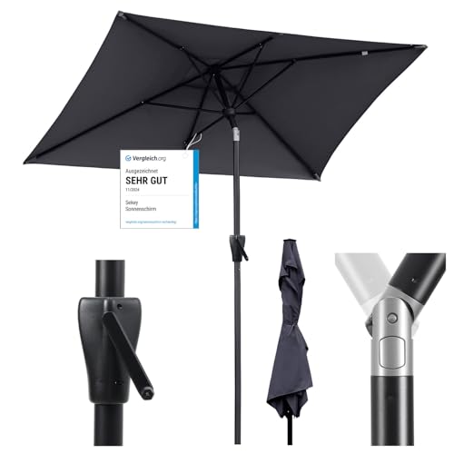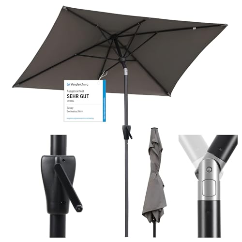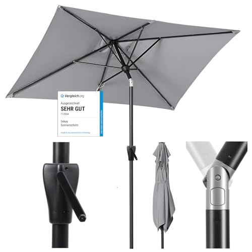 Sekey Trädgårdsparasoll i aluminium, solskydd UV 50+ rektangulär grå, 210 × 140 cm, rektangulär parasoll, grå, 210 × 140 cm, Rektangulärt parasoll