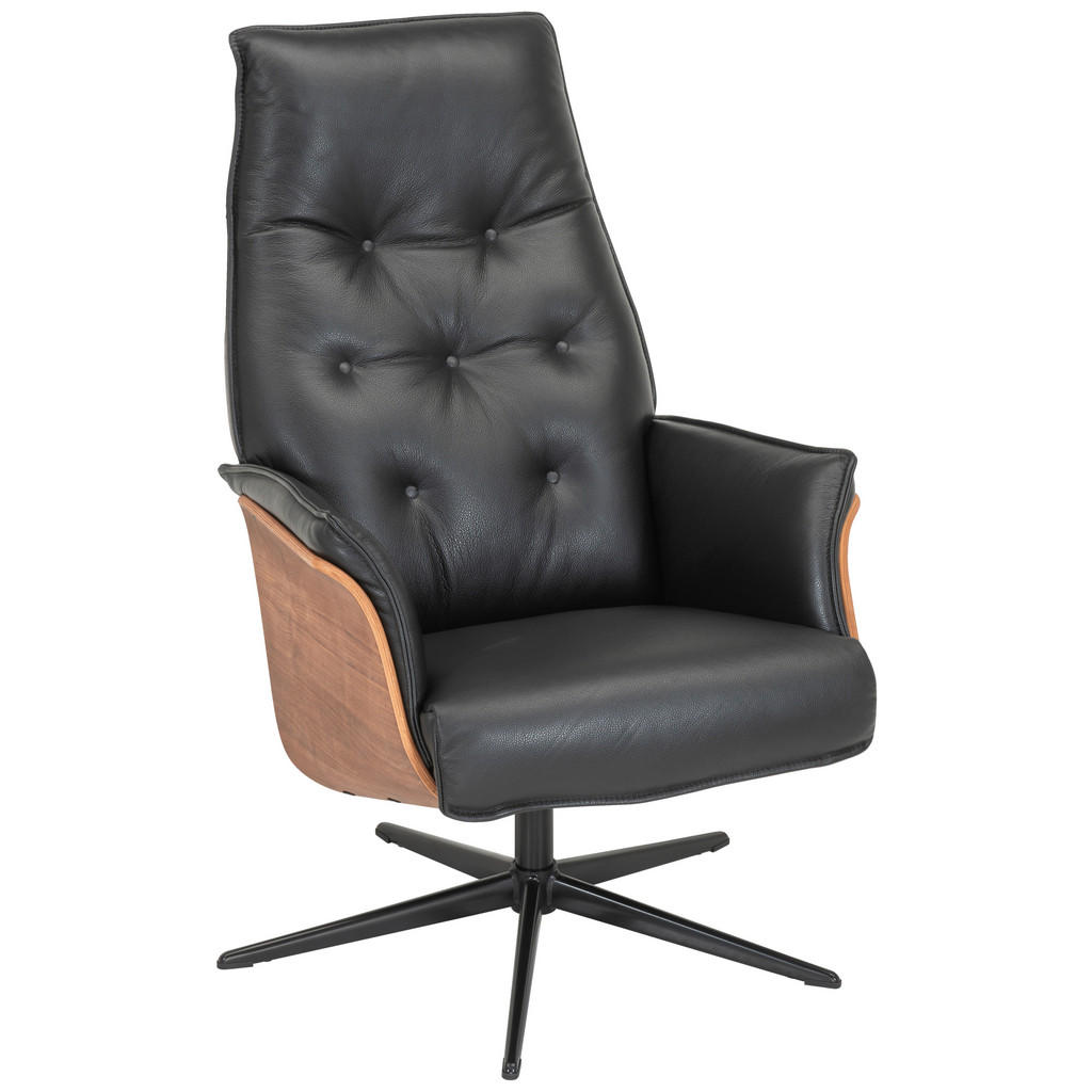 Welnova RELAXFÅTÖLJ i trä, metall, läder svart, nötfärg
