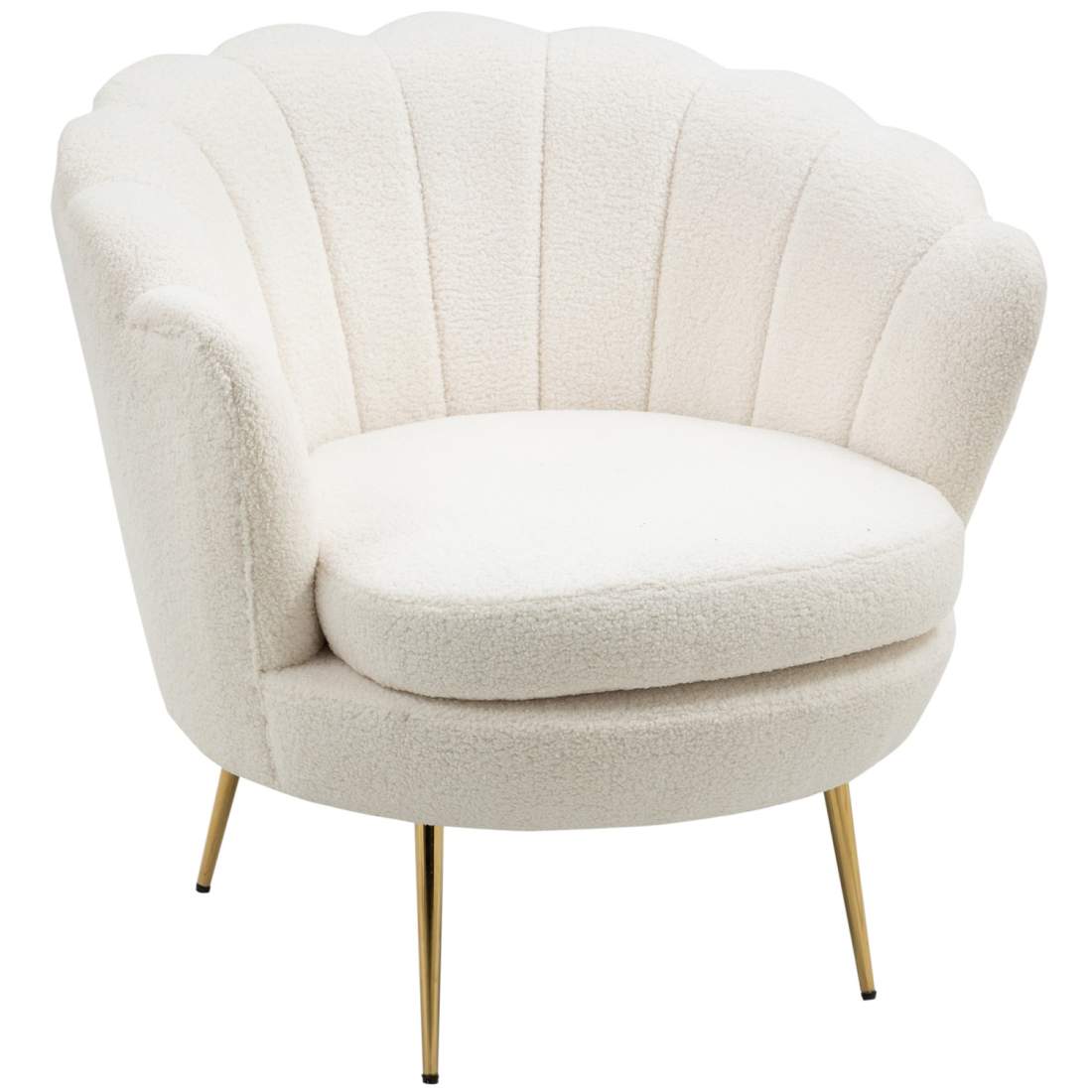 Klädd fåtölj i skalform, fåtölj, relaxfåtölj med metallben, dressingstol med fleecelook, för sovrum, vardagsrum, vit
