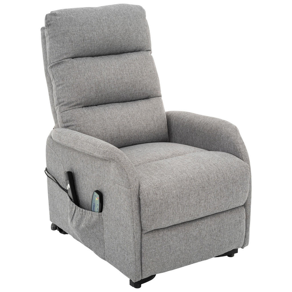 Elektrisk TV-fåtölj med ståhjälp, relaxfåtölj med liggfunktion, TV-fåtölj med fjärrkontroll, sidficka, pocketfjäder och linneloo