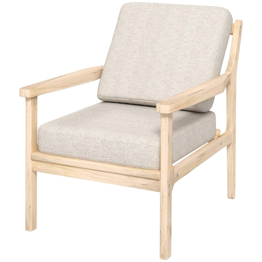 Fåtölj fåtölj med linnelook, armstöd, vadderad relaxstol med träben, avtagbara kuddar, stoppad stol för sovrum, vardagsrum, beig