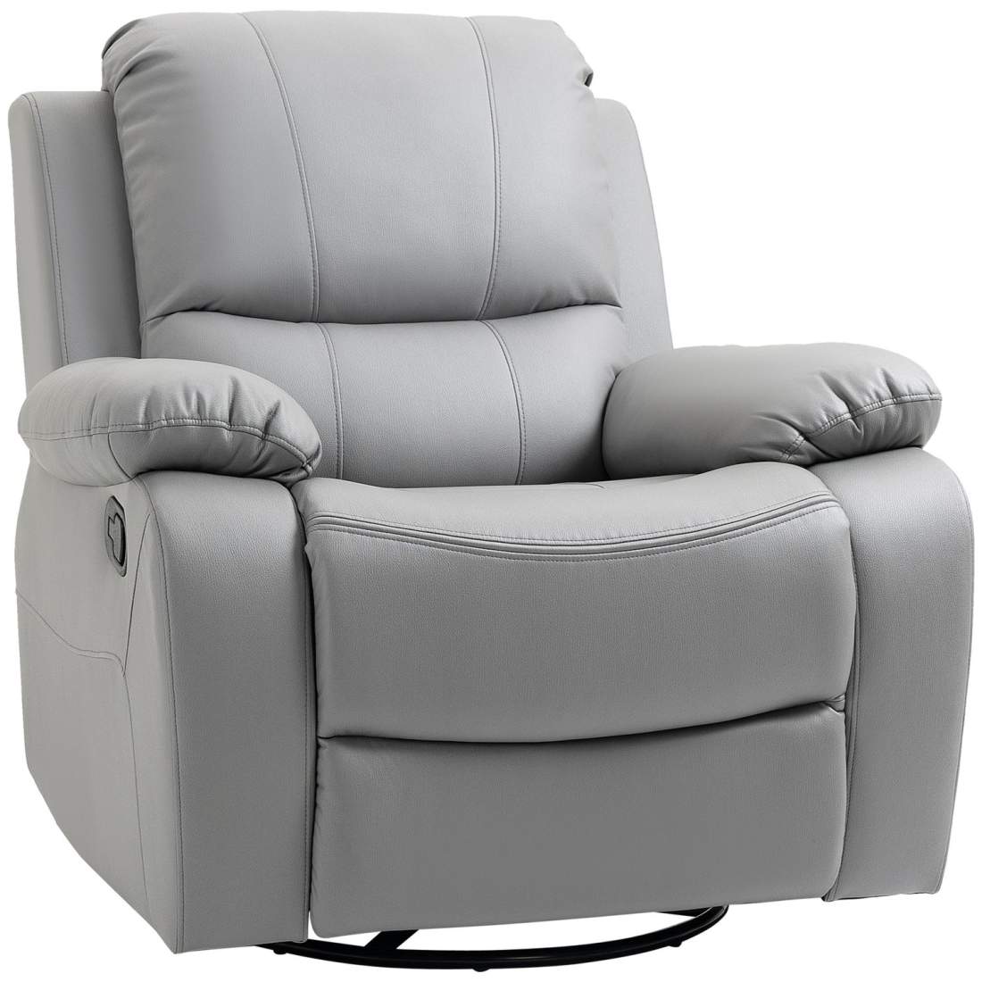 Relaxstol med pall, förvaringsutrymme, stoppad TV-stol med liggfunktion, 360° vridbar TV-stol för sovrum, vardagsrum, konstläder