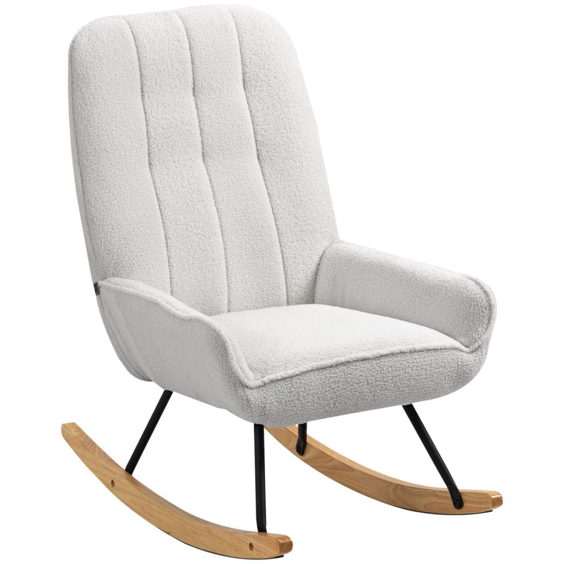 Gungstol, gungstol med berberfleecelook, armstöd, vadderad stol med träskenor, relaxstol för vardagsrum, sovrum, lastkapacitet u