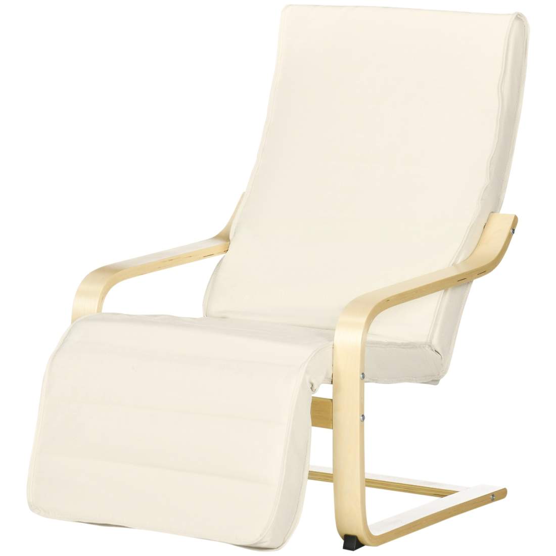 Relaxstol, gungstol, vilstol, relaxstol med justerbart fotstöd, matstol med linnelook för vardagsrum, björkträ, krämvit 66,5 x 9