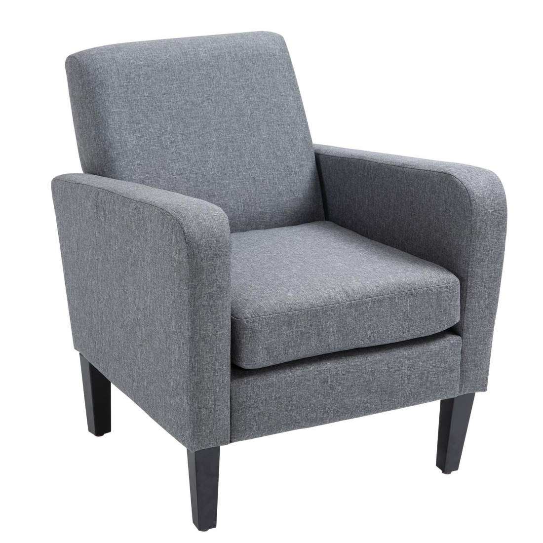 Fåtölj fåtölj med linnelook, armstöd, vadderad relaxstol med träben, för vardagsrum, sovrum, ljusgrå