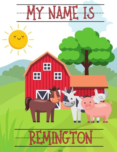 My Name Is Remington | Farm Animals Barn | Personalized Tracing Practice Worksheet Workbook | Learn How To Write Your Name | Homeschool Preschool Pre-K