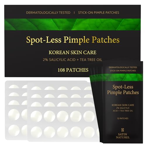 Satin Naturel Acne-lappar, 108 stycken med 2 % salicylsyra, teträdolja och hyaluronsyra – Koreansk vård mot fläckfläckar för finnar, finnar och ren hud