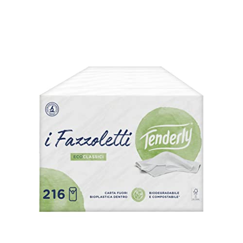 Tenderly Eco Klassiska, Mjuka och Delikat Lädernäsdukar i ren mobil hud, Återvinningsbar pappersförpackning, 18 Förpackningar Tillverkad i Italien, Dermatologiskt Testad, FSC Certifierat papper