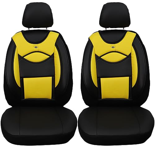 BREMER sittöverdrag mått bil konstläder skyddsöverdrag kompatibla med Renault Austral förare och passagerare från 2022/textiläder skyddsöverdrag set bilstolsskydd 2-pack i svart/gul (D105)