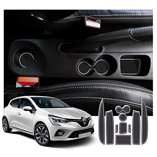 SHAOHAO Kompatibel med Renault Clio 4 BH/KH Clio IV 2013, 2014, 2015, 2016, 2017, 2018 RS GT, dammtät, halkfri matta för inomhusdörr, skärning, armstöd förvaringslåda (vit)