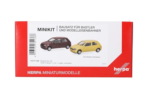 Herpa Byggsats MiniKits Renault Clio 16V, Jaune/Rouge Etrusque, miniatyr i skala 1:87, samlarobjekt, byggsats för modellbygge, plast