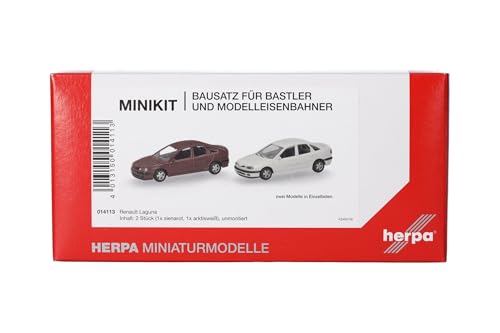 Herpa modellbyggsats MiniKit Renault Laguna siennaröd och arktisvit, 2 stycken, miniatyr i skala 1:87, samlarobjekt, byggsats för modellbygge, plast