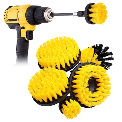 Purepower Set Med 5 Stuks Borrborstfäste, Rengöringsborste, Borste för Sladdlös Skruvdragare, Klädselborste | Kit för Fälgar, Kakel, Kök, Bil