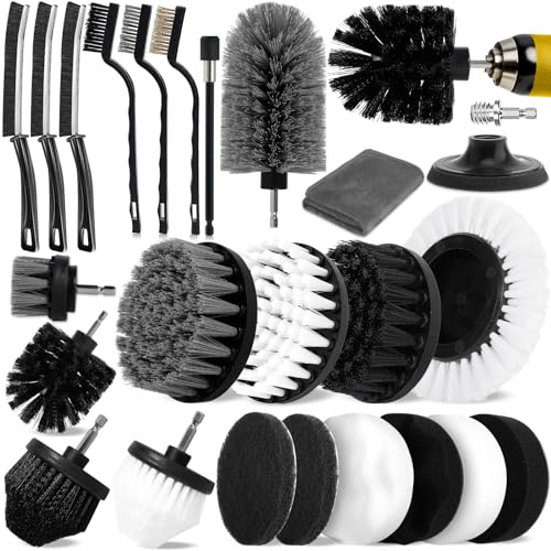 YOCOLE 20 stycken borstfästen sladdlös skruvdragare, borrmaskin, borrborstset Power Scrubber rengöringsborste för fälgar, matta, badrum, bil, kakel, golv