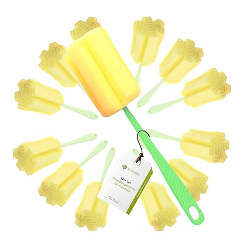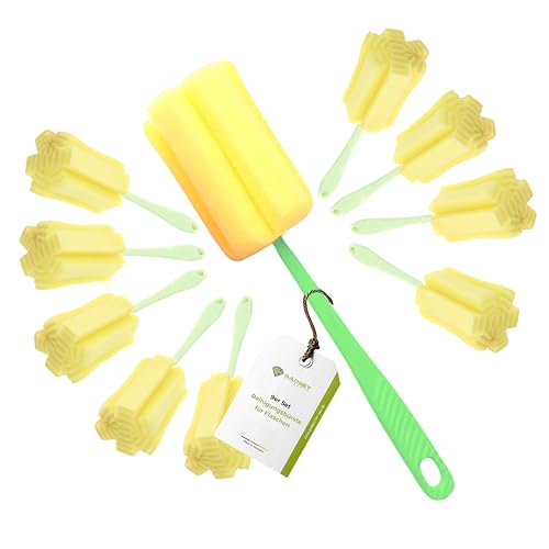 Gadget-Hero rengöringsborste för flaskor uppsättning om 12 – flaskborste svamp – disksvamp för glas – reptålig flaskrengöring med långt handtag – flasksvamp – rengöringsmedel för babyflaskor